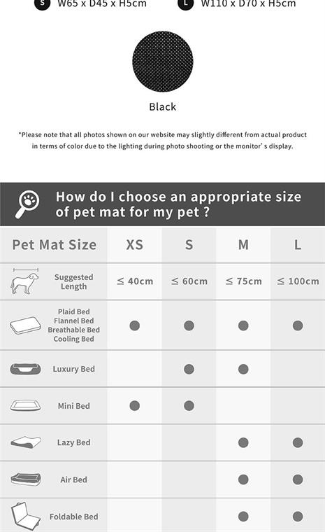 Size:XS / W45 x D30 x H5cm、S / W65 x D45 x H5cm、M / W80 x D55 x H5cm、L / W110 x D70 x H5cm